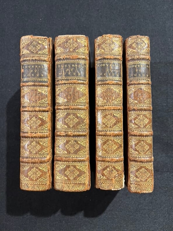 La Haye, Aux dépens de la Compagnie, 1721-1722. 4 volumes in-12 de [28]-451; [4]-652; [4]-456; [4]-352-[4] pages, plein veau brun, dos à nerfs ornés de filets et fleurons dorés, pièces de titre marron, coins frottés, manques aux coiffes, mors parfois fendus.