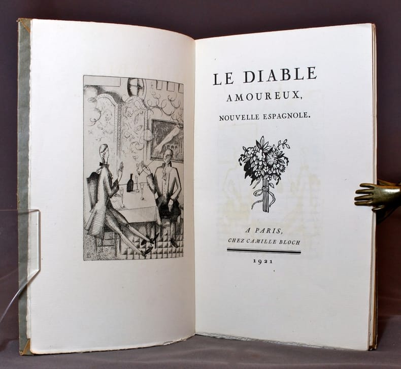 Camille Bloch, libraire-Editeur "Paris, 1921, in-8 broché, couverture rempliée, ix-152pp.-2ff. Une planche de musique hors-texte. Lettrines, un en-tête de chapitre gravé sur bois et 6 gravures au burin de Jean-Emile-Laboureur. Tirage à 575 exemplaires tous sur vergé à la forme des manufactures d'Arches. Un des 545 exemplaires comprenant l'état définitif des gravures. Bien complet du spécimen annonçant la souscription de l'ouvrage, illustré d'une gravure au burin à pleine page. Etat neuf, non coupé. Carteret IV-93 ""Interessante publication"" / S. Laboureur, Livres illustrés p.33. N°194 ""Revenant parmi nous, et suposé qu'il rencontrât M. Laboureur non dans une auberge, mais chez quelque sincère marchand de vin, l'auteur du Diable amoureux ne refuserait pas quelque génie à son plus récent illustrateur, lequel ne paya que trois sous, chez un bouquiniste nantais, l'exemplaire broché de l'édition originale , qui nous a servi de modèle."""