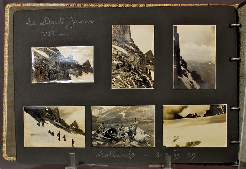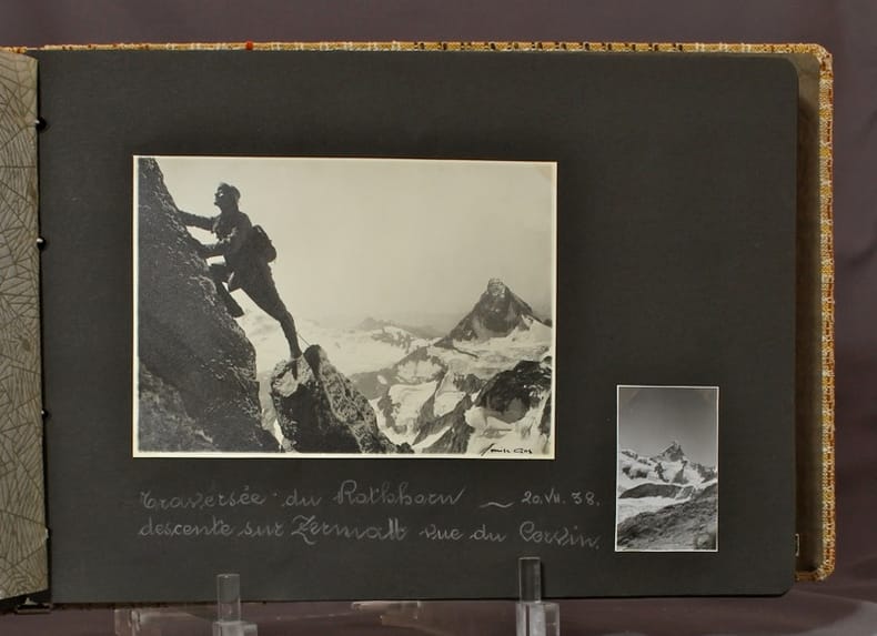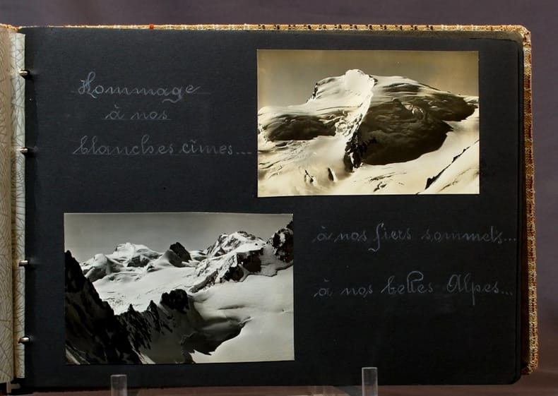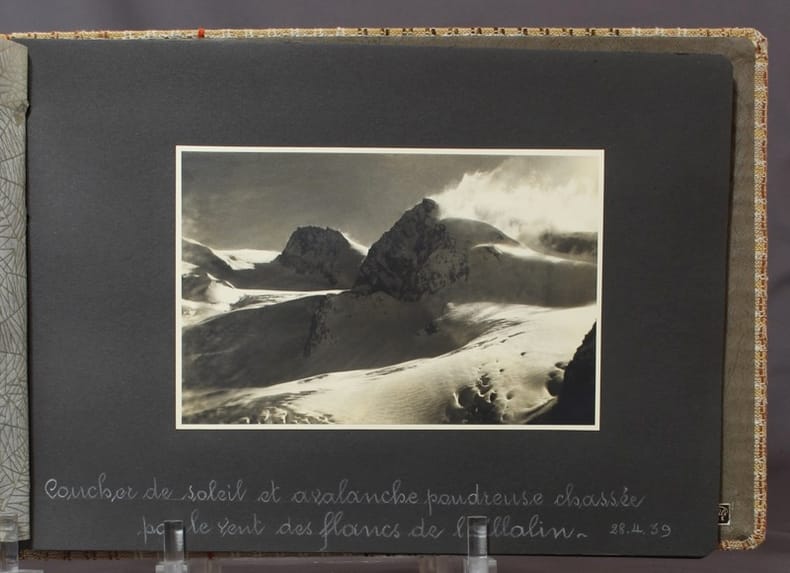 Plus d'un centaine de photographies amateur en noir, soigneusement collées et méticuleusement légendées. On se promène au Besso, au Weisshorn, au Zinalrothorn, au Pigne de la Sex, aux Dents de Morcles, à Chamonix, au Grand Combin… et sur bien d'autres sommets. Très bel album, forcément unique….