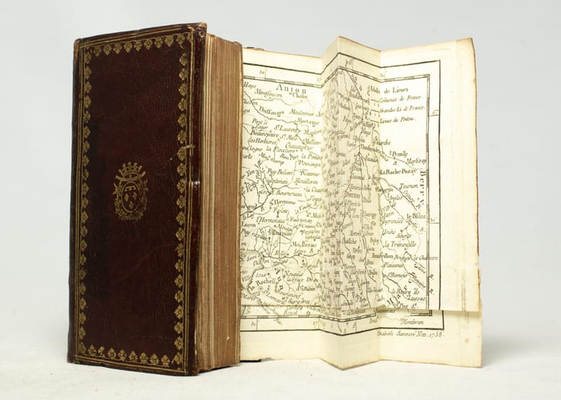 Poitiers. François Barbier. 1790. 1 volume in-16, plein maroquin rouge, triple encadrement de filets dorés sur les plats, dos lisse orné, tranches dorées. 286 pp.; (1) f. 1 carte dépliante du Poitou reliée in-fine.