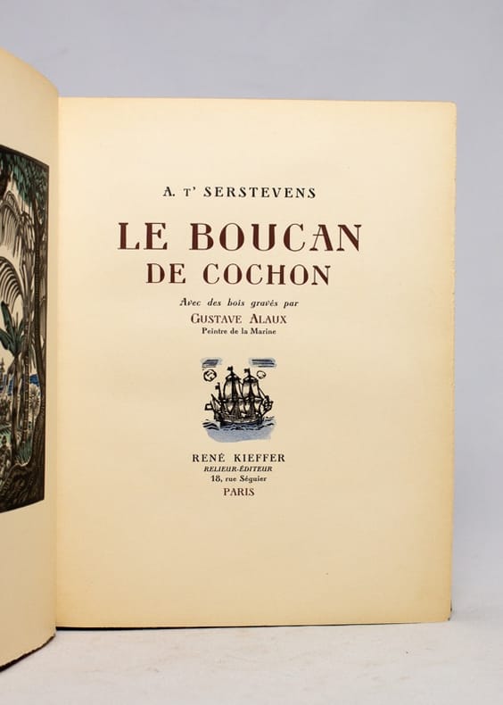 Paris. Chez René Kieffer, éditeur, 1927. In-4 br. Texte d'Albert t'Serstevens. Bois gravés et coloriés par Gustave Alaux, Peintre de la Marine. E.O. Exemplaire nominatif sur vélin teinté, avec une belle dédicace autographe de René Kieffer.