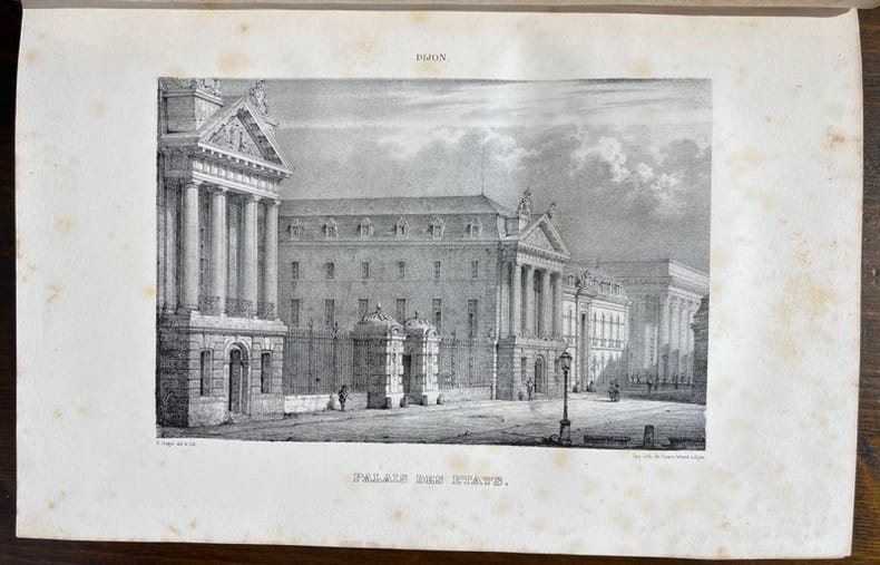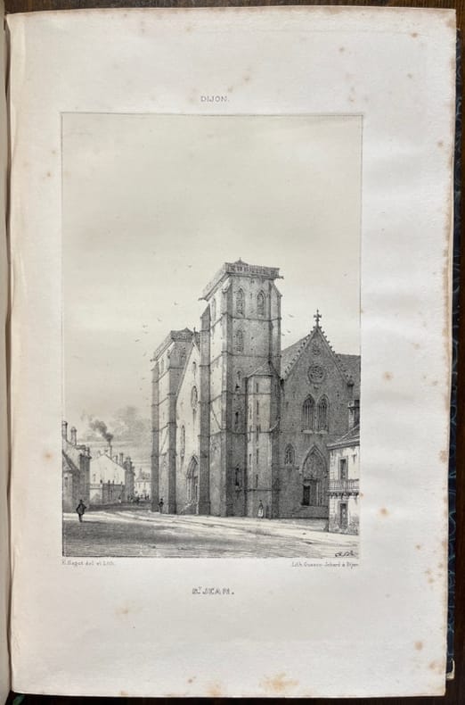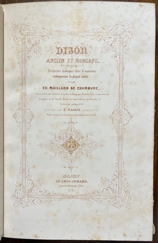 Dijon, Guasco-Jobard, 1840. Grand in-8 de 192 pages, demi-chagrin bleu, dos lisse orné de filets, fleurons et oiseau dorés.
