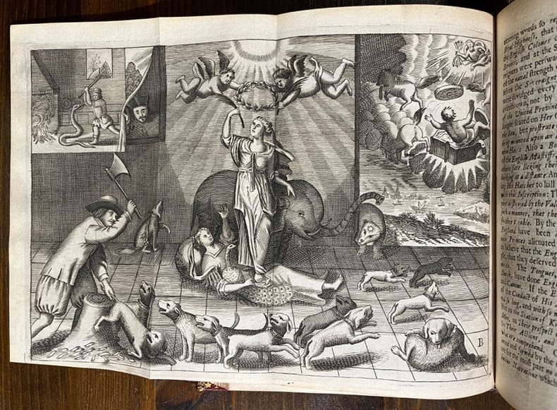Illustré de 2 planches pour le premier ouvrage et de 5 planches pour le second. Rares éditions originales des deux publications, pamphlets contre les hollandais ou sont décrit entre autre les tortures subies par les anglais sur Amboina lors de la seconde guerre anglo-néérlandaise (1665-1667). Il est très rare de les trouver complètes de leurs planches.