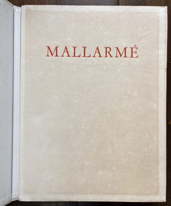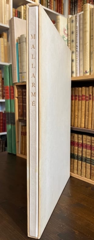 Paris, Rombaldi, 1943-1944. 4 Volumes, complet. In-folio - 33 x 26,5 cm. Reliures signées Legendre en plein maroquin (noir, sapin, bordeaux et brun), dos ornés de 5 nerfs, roulette dorée sur les coiffes, filet doré sur les coupes, quintuple filet doré en encadrement des contreplats, vélins incrustés au centre des contreplats, étui et chemise assortis. Edition en partie originale établie par Henry Charpentier d'après les manuscrits de Mallarmé, dont il était l'exécuteur testamentaire.Tirage limité à 140 exemplaires pour Le Réveil du Faune, celui-ci non numéroté, et à 220 exemplaires pour Gloses et Offrandes à divers du Faune, celui-ci exemplaire B, imprimé spécialement pour René Gas, qui dirigea cette publication. L'Après-Midi d'un faune est enrichi de 2 dessins originaux, le premier signé Demeurisse, le second non signé, et Prélude à l'Après-midi d'un Faune est également enrichi de 3 dessins originaux, tous signés et datés de 1943 par Demeurisse. Cet exemplaire exceptionnel comprend : 6 suites de 21 planches chacune pour L'Après-midi d'un Faune, 7 suites de 16 planches pour Prélude à l'Après-midi d'un faune, 3 suites de 21 planches pour Le Réveil du Faune et enfin, 6 suites de 19 planches pour Gloses et Offrandes à divers du Faune. Ce qui fait un total de 24 suites et de 415 planches.Pour parachever l'ensemble, le dernier volume, Gloses et Offrandes à divers du Faune contient une affiche d'annonce de parution des éditions Rombaldi in fine, ainsi qu'une lettre autographe signée d'Henry Charpentier à René Gas, lui indiquant qu'il pourra conserver cet autographe et qu'il lui confie l' "épreuve du Mallarmé", ce qui explique cet exemplaire hors normes.