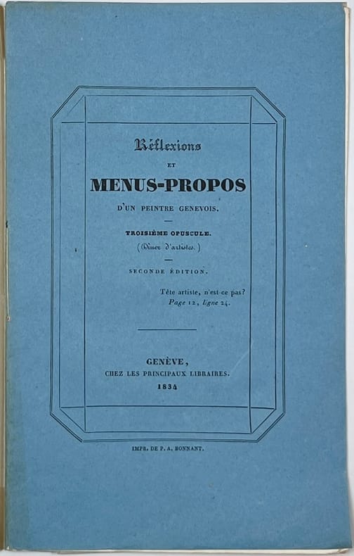 Genève, chez tous les libraires, 1834. Plaquette in-8 brochée de 19 pages. Couverture bleue.