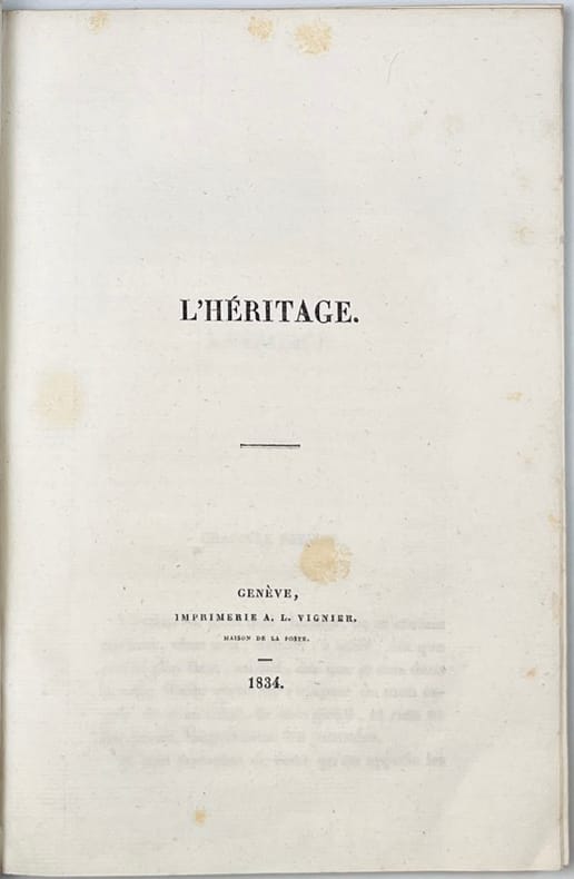 Genève, Imprimerie A. L. Vignier, 1834. In-8 broché de 123 pages.