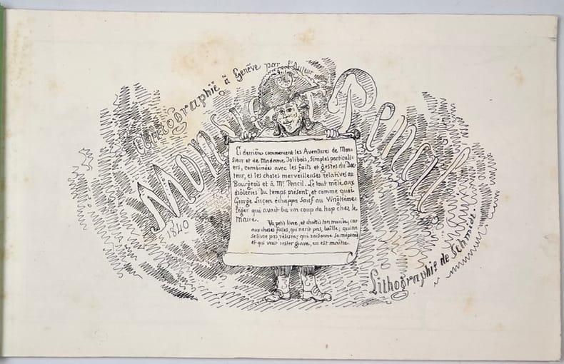 Monsieur Pencil. Autographié à Genève par F. T. Lithographie de Caillet. (Paris: Librairie de Garnier Frères, 1860). [M.C.: livre pour enfants, livre illustré]