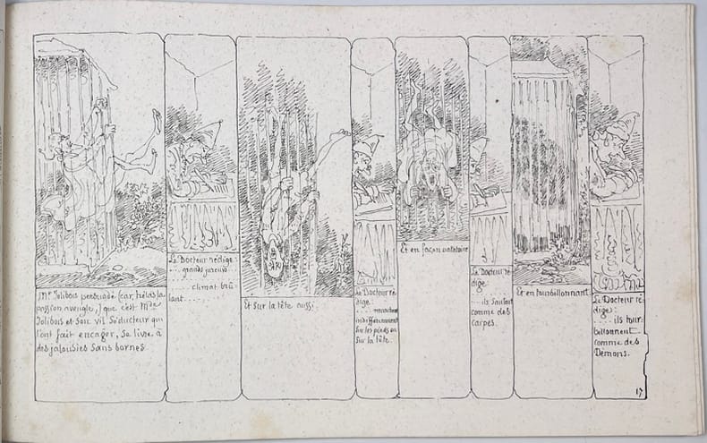 Paris: Librairie de Garnier Frères, 1860 pet. in-4 oblong, [1]-71 ff. Reliure percaline décorée d'édit. portant le titre "Histoire de Mr. Pensil par Toppfer". charnières déchirées en partie, taches d'encre sur les plats, tranches dorées, rousseurs.
