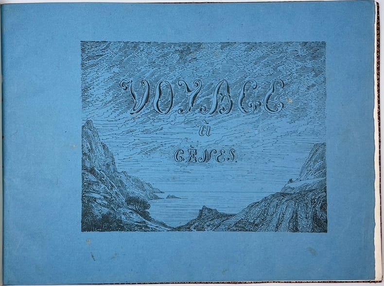 Édition originale. Exemplaire exceptionnel avec les très rares couvertures qui constituent le tout premier essai de Töpffer selon Suzannet (69b) qui est le seul à les mentionner. Inconnues de Mirabaud, Lonchamp (dont provient pourtant l'exemplaire) et Candaux. Tous mentionnent deux variantes pour le premier plat de couverture, c'est un troisième que nous avons là. Idem pour le second plat, il est d'un dessin différent. Frontispice, une carte gravée dessinée par J. Burdallet. Bel exemplaire malgré quelques rousseurs. De la bibliothèque de Loraine of Kirkharle, avec son ex-libris. Mirabaud p. 23; Lonchamp 3008; Suzannet 69 à 69b; Candaux XVI.
