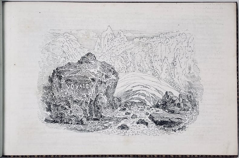 Édition originale enrichie d'un envoi autographe de l'auteur " Pour son b.frère [???] Duval leur aff.[ectionn]é RT." De la bibliothèque Loraine of Kirkharle avec son ex-libris armorié. Commence le mercredi 12 août 1840, ce voyage a dure vingt-trois jours. Voyageurs: M. et Mme Töpffer, Mme X., dix-neuf élèves, et David le domestique. Très bel exemplaire Mirabaud p. 27; Lonchamp 3015 (ne mentionne pas la carte); Suzannet 81, 82; Candaux XXIII.