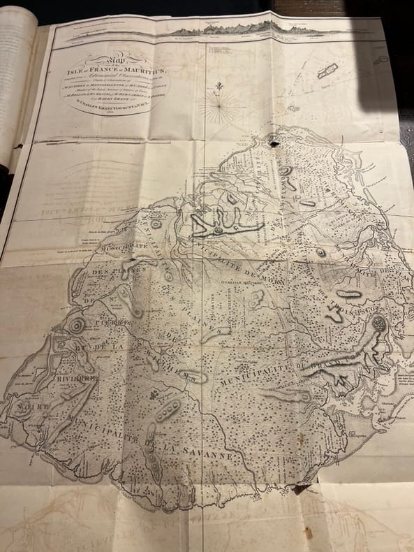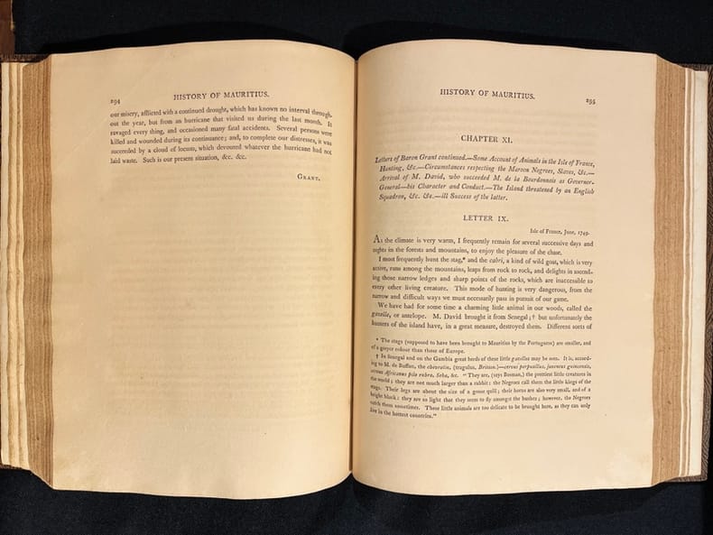 Illustré d’une carte de l’île et d’un plan de Port-Louis. Rare édition originale. Bien complet du feuillet 144*/145*, sur le Dodo. Il manque une carte. Papier bruni.