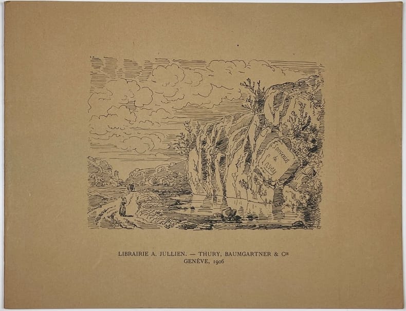 Genève, Librairie A. Jullien; Thury, Baumgartner et Cie, 1906. Plaquette in-4 de 12 pages, couverture illustrée.