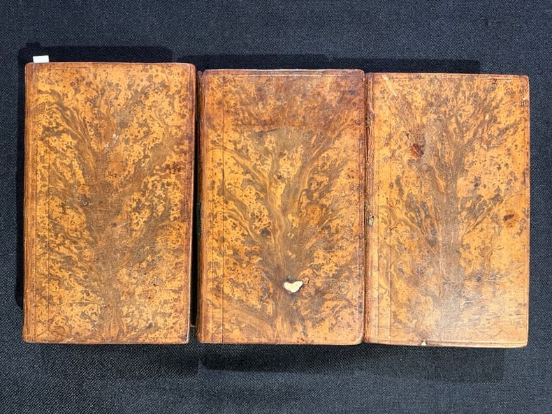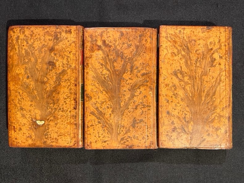 A Basle, chez Charles Auguste Serini, A Lausanne, chez Henri Vincent, 1791-1793-1797. 3 volumes in-12 de 637; 540 et 535 (chiffrée par erreur 525) pages, plein veau raciné, dos lisses richement ornés de filets et fleurons dorés, pièces de titre et tomaison en maroquin rouge et vert, tranches vertes.