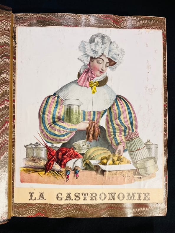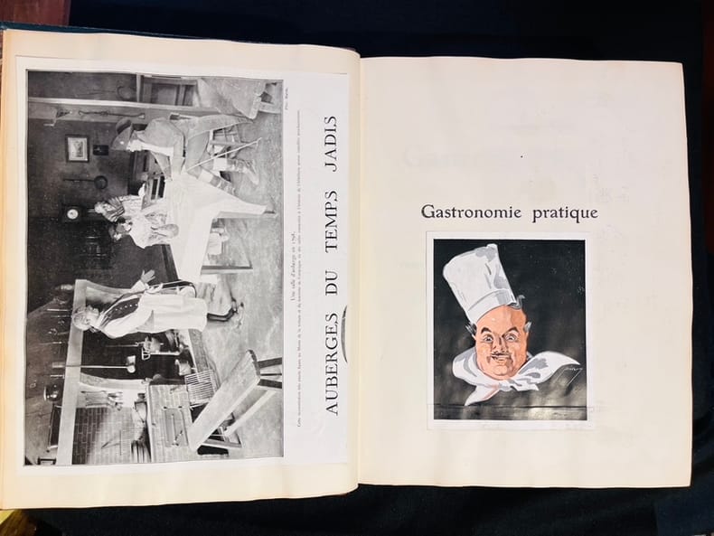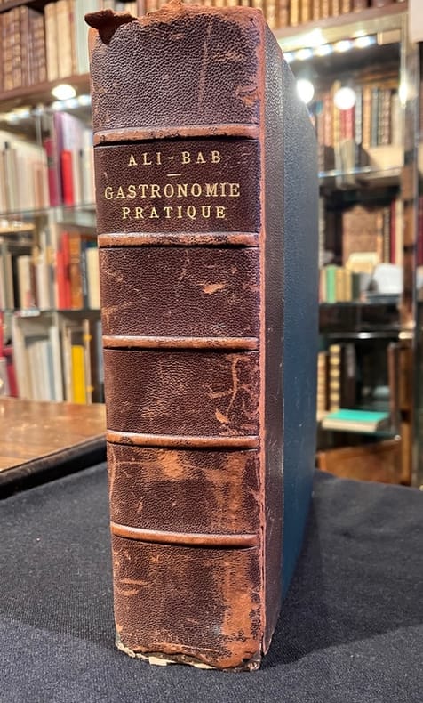 L'un des plus importants recueils de recettes du XXe siècle. Notre exemplaire - surtout au début et un peu vers la fin - est truffé de reproductions ou photos collées dans les espaces libres, à même les pages. Reliure épidermée, un mors fragile. !!! !!! Du 3 octobre au 24 octobre il n'y aura pas d'expédition de colis: le libraire est en voyage. La librairie reste ouverte et nous répondrons sporadiquement aux emails. Merci pour votre compréhension. ––> From 3 October to 24 October, there will be no parcel deliveries as the bookseller will be travelling. The bookshop will remain open and we will respond to emails sporadically. Thank you for your understanding.