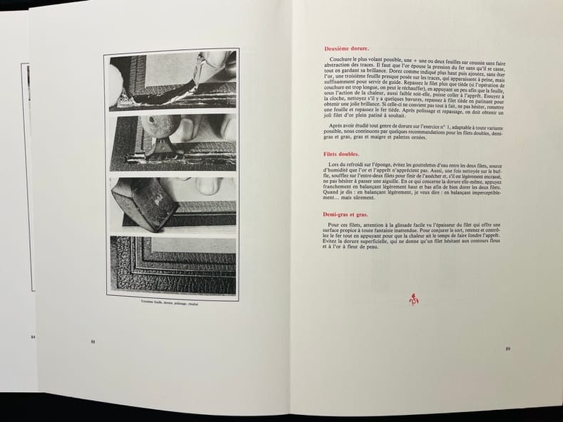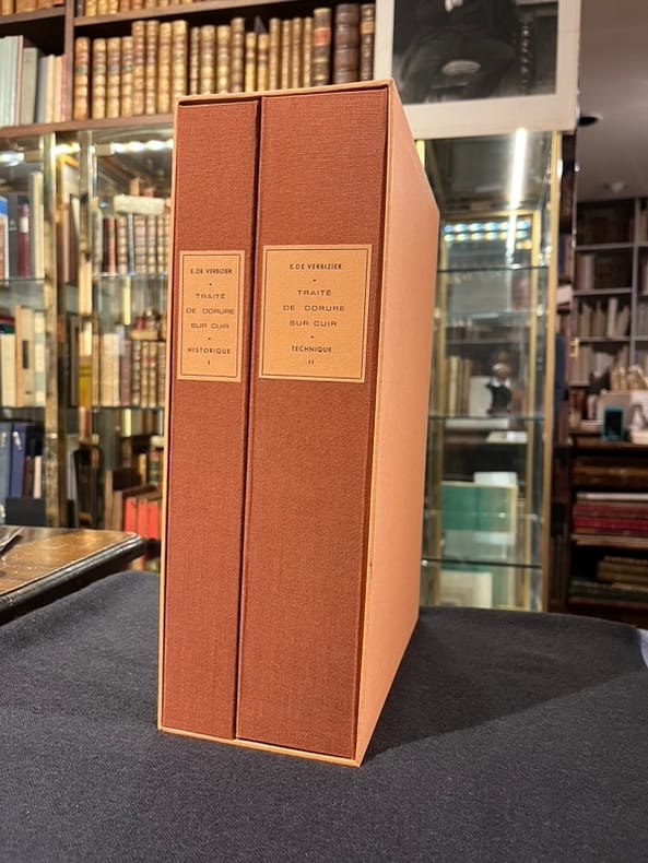 Édition original de cet excellent ouvrage dont le premier volume est purement historique, et le second "est un plaidoyer en faveur d'une haute technicité en matière de dorure pure". Tiré à 1000 exemplaire numérotés (338) sur vélin de Rives, signés par l'auteur. A l'état de neuf, non coupé.