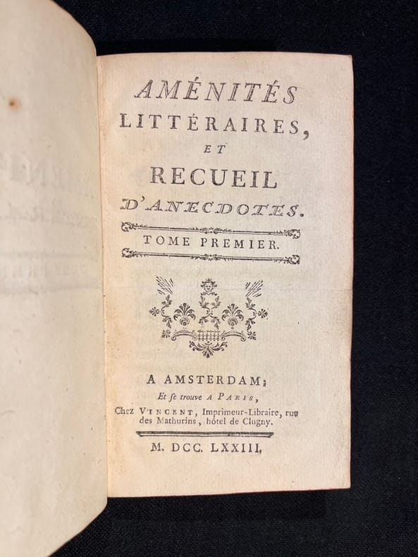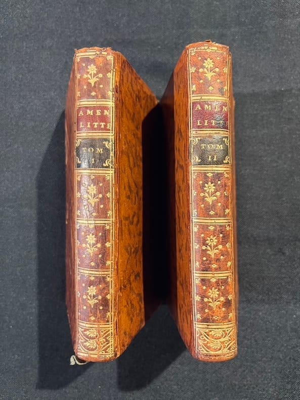Amsterdam, Vincent, 1773. 2 volumes in-12 de VIII-344 et [4]-339 pages, plein veau moucheté, dos lisses orné de filets et fleurons dorés, pièces de titre et tomaison rouges et noires, tranches rouges.