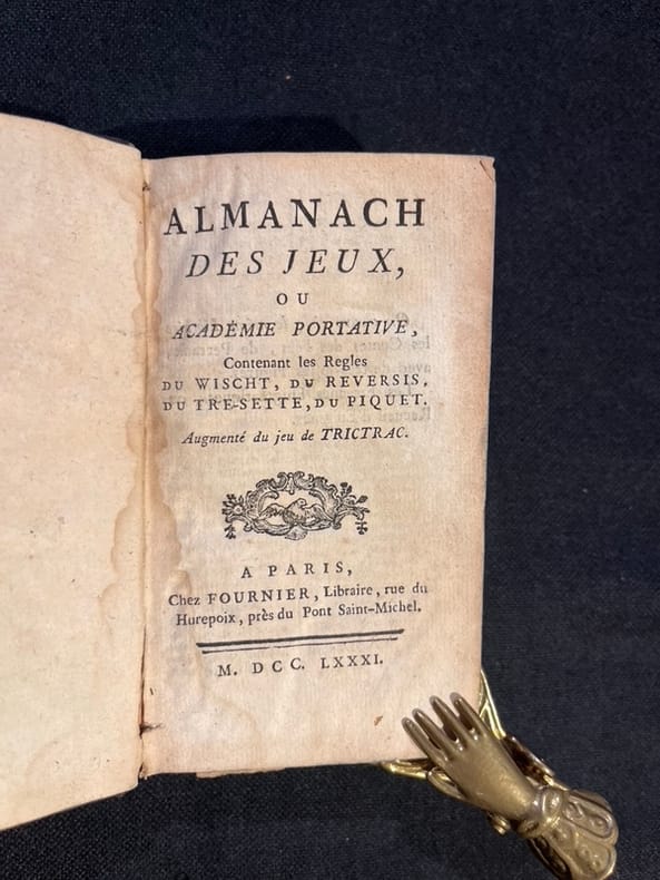 Après le titre un calendrier, puis chaque jeu à sa propre pagination. Exemplaire mouillé, reliure un peu cabossé. !!! !!! Du 3 octobre au 24 octobre il n'y aura pas d'expédition de colis: le libraire est en voyage. La librairie reste ouverte et nous répondrons sporadiquement aux emails. Merci pour votre compréhension. ––> From 3 October to 24 October, there will be no parcel deliveries as the bookseller will be travelling. The bookshop will remain open and we will respond to emails sporadically. Thank you for your understanding.