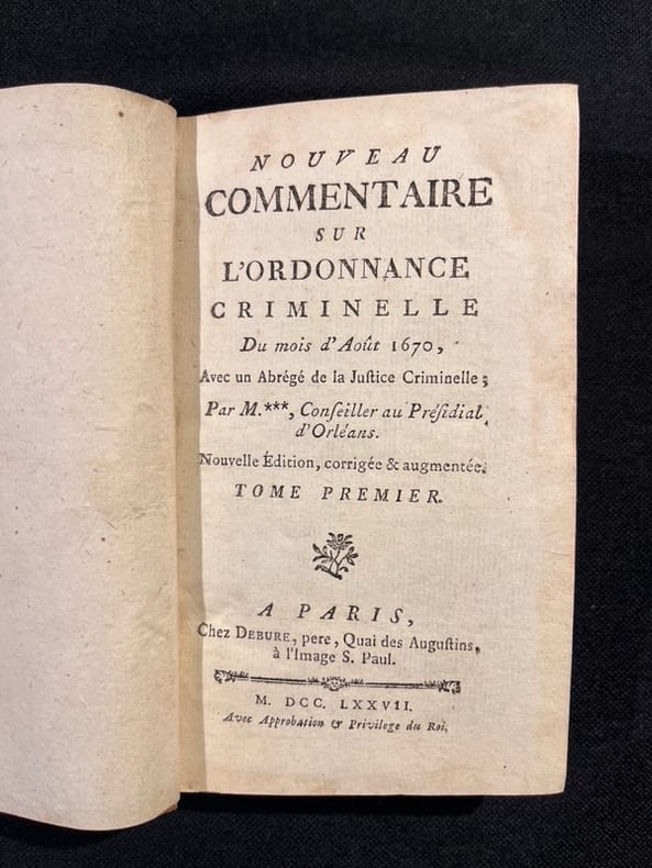 Daniel Jousse (1704 - 1781) : éminent pénaliste, il est l'un des plus importants commentateurs des ordonnances et édits du XVIIe siècle. Fermeture de la Librairie du 30/12/2025 au 11/01/2026