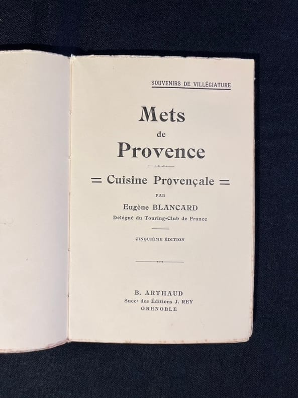 Cinquième édition de cet alors classique de la littérature gastronomique provençale. Intérieur très frais, seule la couverture est tachée.