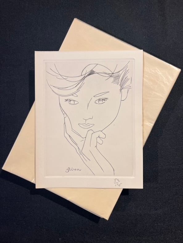 Illustré par Jean Dulac de 25 gravures au burin. Jolie publication réalisé par l'artiste, tirée à 340 exemplaires numérotés, le nôtre un des 250 sur beau vergé de Rives (135). On joint une carte de voeux pour 1962 de Jean Le Bodo, libraire 60 avenue Paul Doumer à Paris: c'est une gravure de A. Jubeau. !!! !!! Du 3 octobre au 24 octobre il n'y aura pas d'expédition de colis: le libraire est en voyage. La librairie reste ouverte et nous répondrons sporadiquement aux emails. Merci pour votre compréhension. ––> From 3 October to 24 October, there will be no parcel deliveries as the bookseller will be travelling. The bookshop will remain open and we will respond to emails sporadically. Thank you for your understanding.