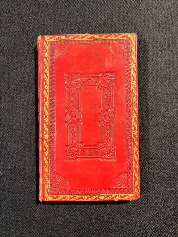 Lausanne, Au dépôt bibliographique de Benj. Corbaz, 1833. In-12 de 120 pages, plein veau glacé rouge, dos orné de filets dorés et fleurons à froid, plats richement ornés de fers romantiques, dorés et à froid.