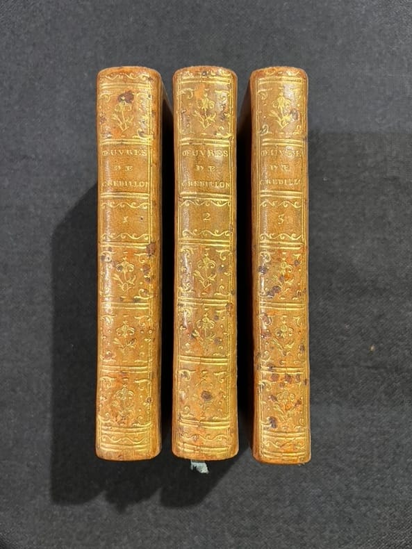 Reprise de l'édition de Prault parue en 1754 ornée en front. du tome 1 d'un portrait de Crébillon d'après de LA TOUR gravé par L.J. CATHELIN. Infimes accrocs de reliure, petit manque à la pièce de tomaison du tome 1, sinon, bel exemplaire dans une agréable reliure de l'époque.