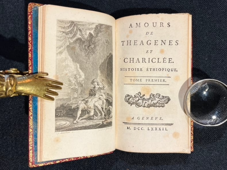 Nouvelle édition de la traduction attribuée à Poullain de Sainte-Foix ou à l'abbé de Fontenu de cet roman parfois aussi intitulé Les Éthiopiques. Elle est illustrée de 6 planches et 6 vignettes au premier volume et 5 planches et 6 vignettes au second. Barbier, I, 151a. * Membre du SLAM et de la LILA / ILAB Member. La librairie est ouverte du lundi au vendredi de 14h à 19h. Merci de nous prévenir avant de passer,certains de nos livres étant entreposés dans une réserve.