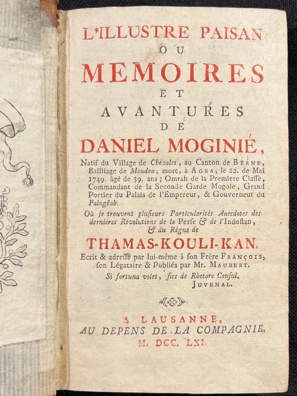 Lausanne, au dépens de la compagnie, 1761. In-8 de 16-224 pages, demi-veau brun dos à nerfs, filets et fleurons dorés, pièce de titre noire.