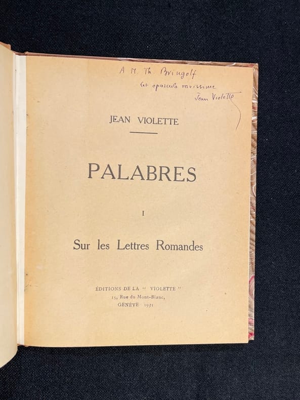 Éditions originales de ces deux rares publications. La première est dédicacée " A M. Th. Bringolf, cet opuscule rarissime". La seconde, au même: "Cet essai de philosophie élémentaire". Le relieur a hélas un peu rogné le second envoi (le nom). De la bibliothèque de Théophile Bringolf, avec son ex-libris.
