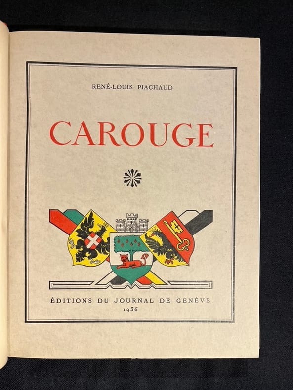 Illustré de 20 hors-texte en noir et de figures in-texte, parfois à pleine page. Oeuvres de E. Cottier, H. C. Forestier ou reproduction de documents anciens. Photographies de Boissonnas. Édition originale au tirage limité à 850 exemplaires numérotés, celui-ci numéro 786. Très bel exemplaire dans une élégante reliure aux couleurs de la commune de Carouge.