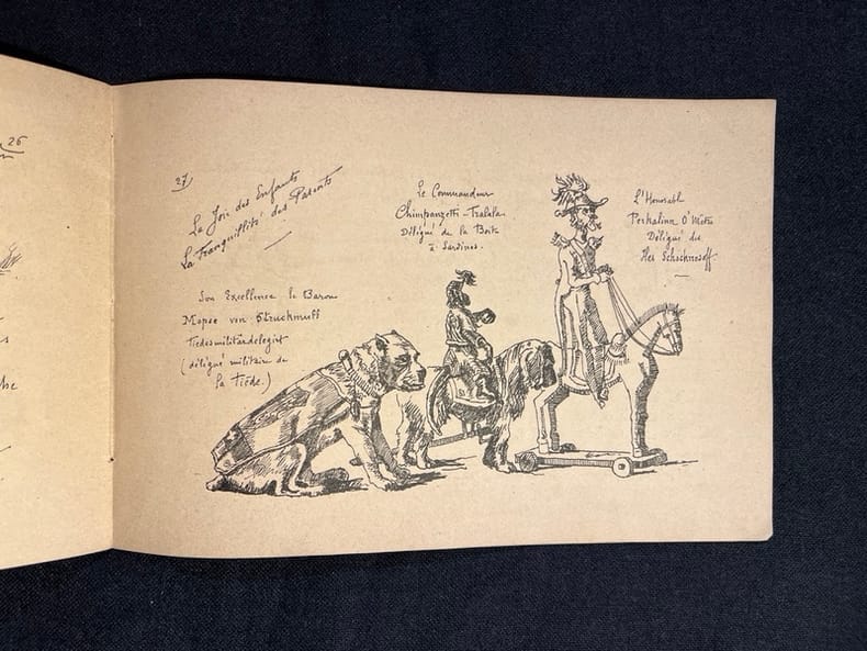 Sympathique et drôle album des plus rares. Un vrai topferrianna par Henri Hébert qui se cache ici sous le pseudonyme de Phantaz. Il fera d'autres albums du genre, mais il semble bien que celui-ci soit son premier. En très belle condition.