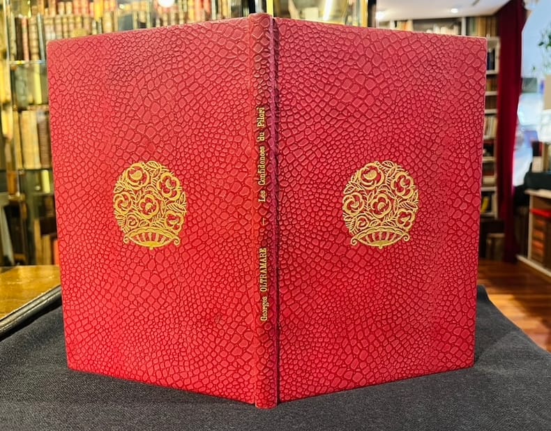 Genève, Société d'édition indépendante, 1935. Grand in-8, relié en plein maroquin bleu nuit, dos lisse, tête rouge, couvertures illustrées et dos conservés.