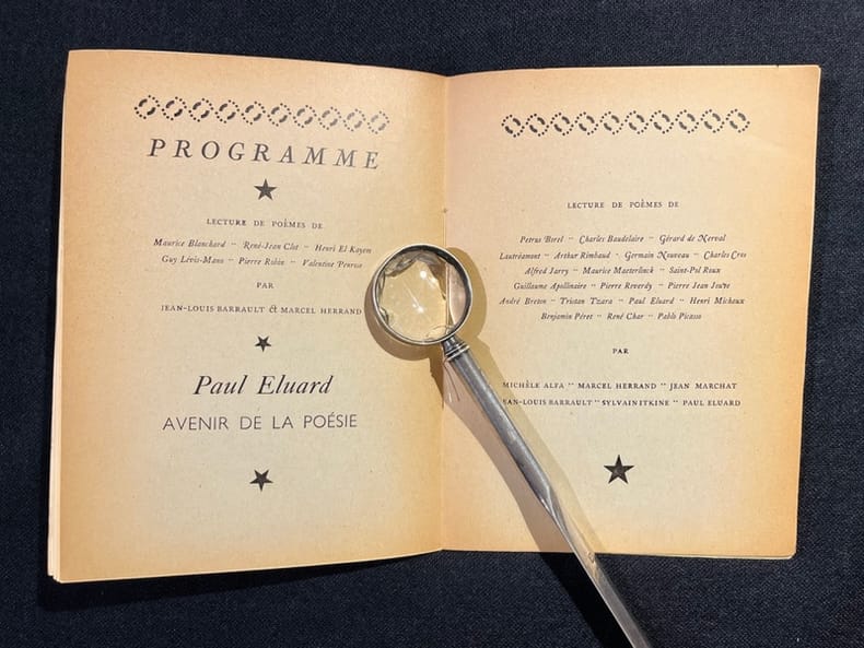 Illustré en couverture de la gravure "Grand air" de Pablo Picasso reproduite au trait. Édition originale. Il n'y a pas de tirage numéroté, le nôtre sur vélin et un feuillet double de papier teinté comportant entre autre le programme de la soirée du 2 octobre. Couverture salie.