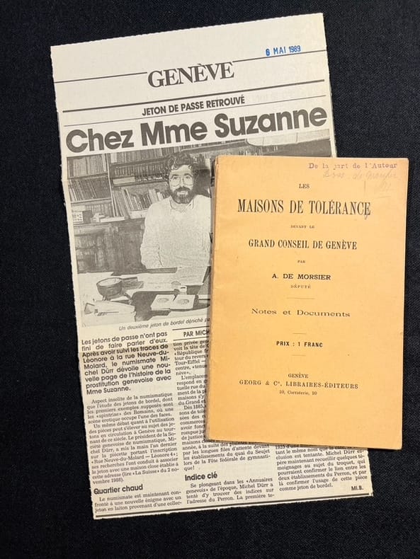 Peu commun. On joint un article consacré à un jeton de passe de la maison genevoise chez Mme Suzanne.