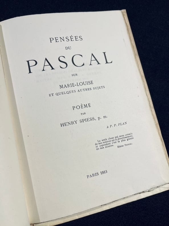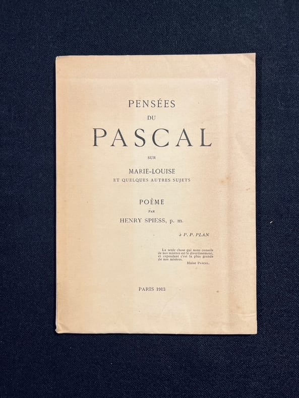 Édition originale hors commerce tirée à 32 exemplaires par Albert Kundig, à Genève, en septembre 1919. Avec un envoi autographe "au poète Franck Grandjean, en cordial souvenir d'Henry Spiess" et justifié par lui "exemplaire d'auteur". Couverture insolée.