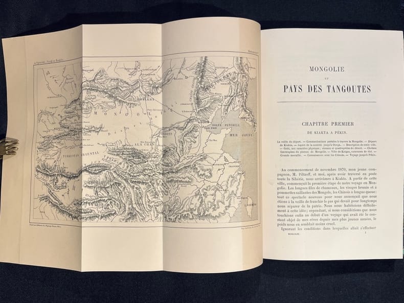 Illustré de 42 gravures sur bois et 4 cartes dépliantes. Précédé d'une préface de M.E.Delmar-Morgan et d'une introduction du Col Yule traduites de l'anglais par J. Belin de Launay. Agréable exemplaire sans la moindre rousseur.