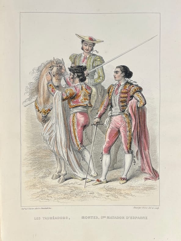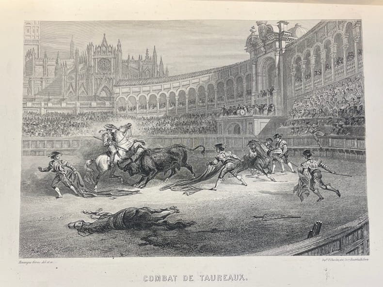 Première édition illustrée, ornée de vues et de scènes pittoresques hors texte dessinées et gravées sur acier par Rouargue. Un des très rares exemplaires de luxe renfermant 36 planches dont 10 de costumes rehaussées en couleurs. Les exemplaires ordinaires ne contiennent que 20 planches dont deux en couleurs (seule description mentionnée par Vicaire). La jolie reliure d'éditeur porte la signature de Charles Magnier. Très bel exemplaire, presque sans rousseurs.