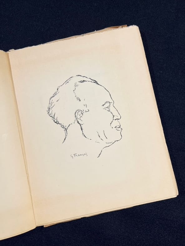 Genève, Editions du Groupe Jean Violette 1946, 195x160mm, 64pages, broché. Exemplaire sur papier Vélin Bouffant sans bois, numéroté n.° 237 / 630. Vignette et portrait par le peintre Gustave François. Dédicace sur le haut de la page de garde supérieure. Nom du possesseur sur le bas de la page de garde supérieure. Bon état.