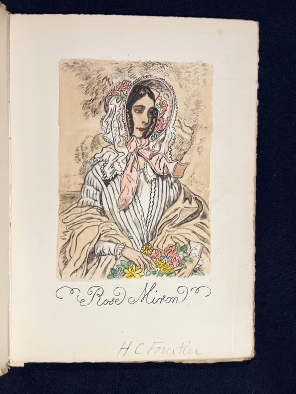 Bien complet du dessin de H.-C. Forestier, signé et colorié à la main par l'artiste, accompagnant le tirage de tête. Édition originale au tirage limité à 61 exemplaires numérotés sur Hollande van Gelder (53), seul grand papier.
