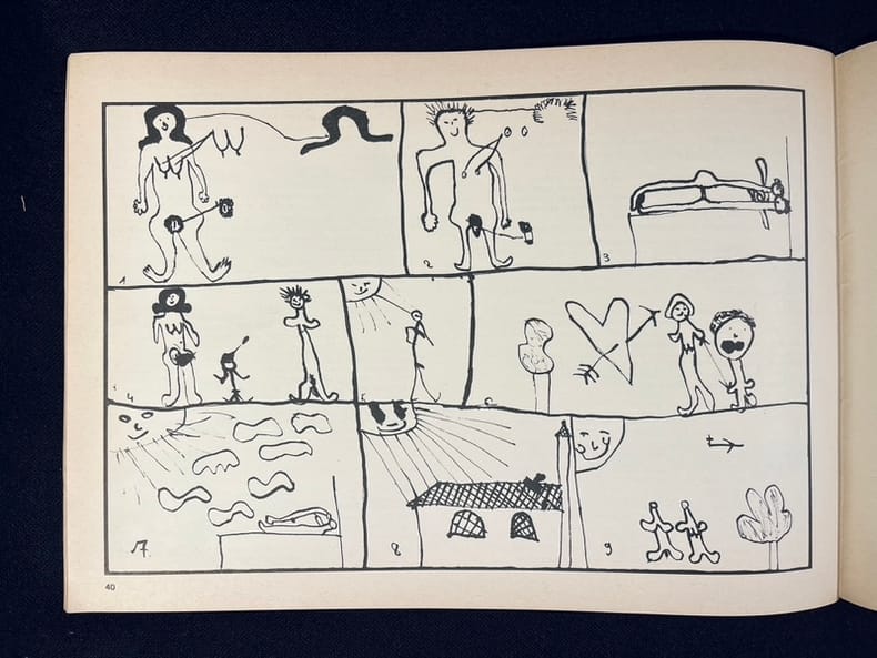Iconographie constituée en bonne partie de dessins d'enfants. Petit manuel d'éducation sexuelle dirigée vers la jeunesse publiée par le Centre d'édition et de diffusion d'imprimés et publications socialistes.