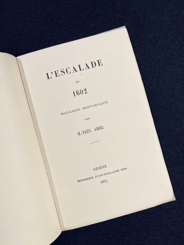 Genève, imprimerie de Jules-Guillaume Fick, 1875. Plaquette in-12 de 36 pages.