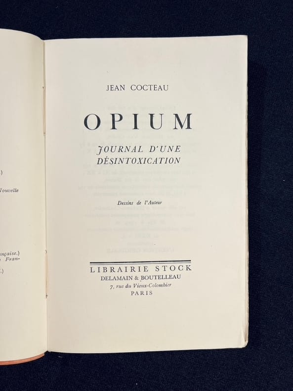 Un volume in 12°, reliure souple éditeur, 270 pages avec de nombreux dessins hors-texte de Jean COCTEAU. “J’ai supprimé les dessins faits sous prétexte de me distraire, écrit-il en avant propos, Bon gre, mal gré, ils sentaient le travail plastique... , Je relate une désintoxication: blessure au ralenti.”Edition courante, exemplaire TRES BON ETAT.