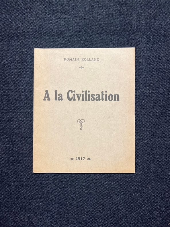 Il s'agit du fameux pamphlet "Aux peuples assassinés". Le texte de Rolland est daté du 2 novembre 1916. Suit un Appendice: "Le message de l'Inde au Japon. conférence faite à l'Université Impériale de Tokio le 15 juin 1916 par Sir Rabindranath Tagore"; dont le texte a été traduit de l'anglais par Andrée Jouve d'après la revue américaine The Outlook. Bel exemplaire à l'état de neuf.