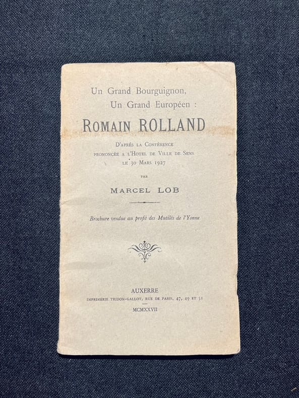 La brochure était vendue au profit des mutilés de l'Yonne. Envoi autographe de l'auteur "A M. Robinet de Cléry et à son fils, en respectueux témoignage de sympathie. Paris, 16/5/1929. Marcel Lob".