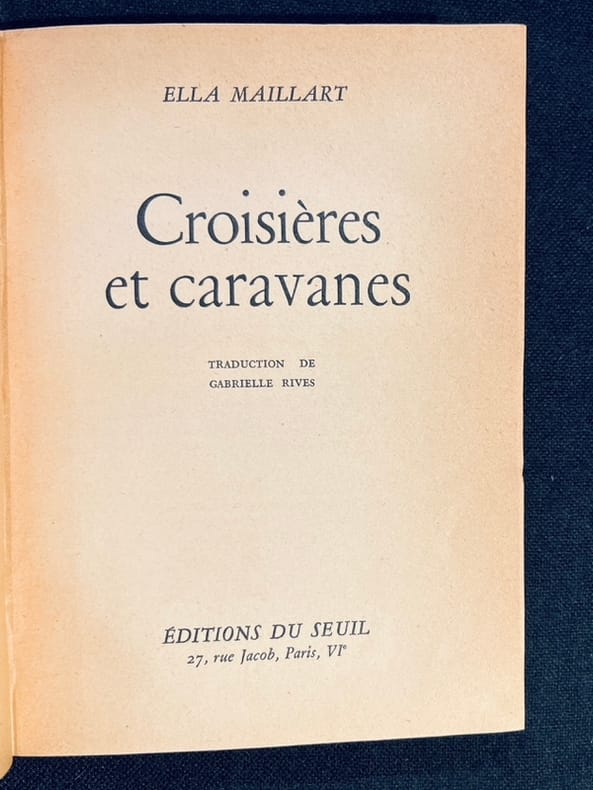 Illustré de nombreuses photographies hors-texte et une carte à double page. Édition originale de la traduction française, par Gabrielle Rives. La première édition est parue à Londres, par The Travel Book Club. Notre exemplaire est enrichi d'un envoi autographe de l'autrice: "Pour Chou [?] Delarue en toute sympathie. Ella Maillard".