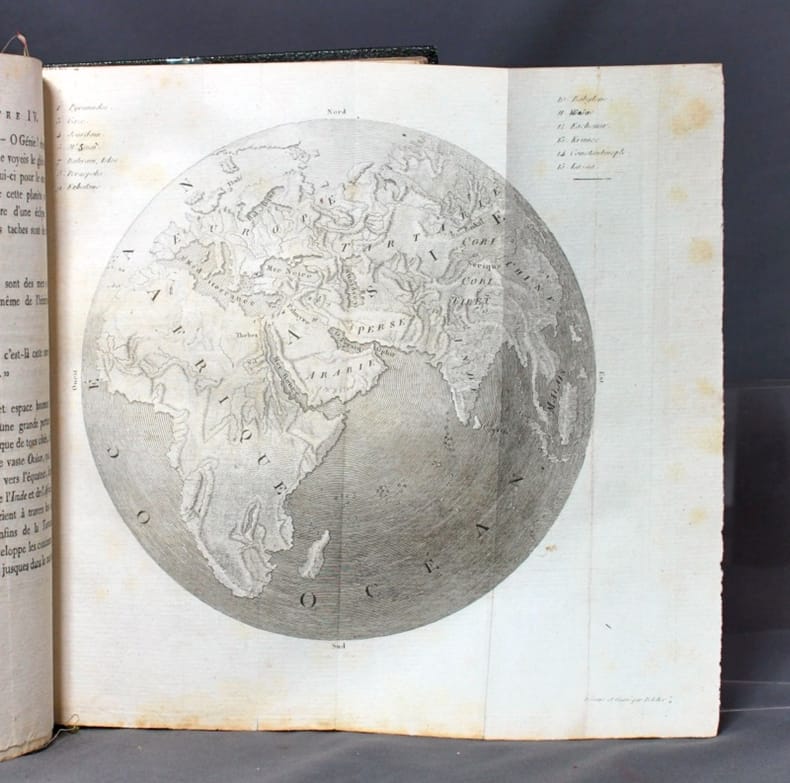 Illustré de deux cartes rempliées, et d’un frontispice gravé. Publié pour la première fois à Genève en 1791, cet ouvrage valut la célébrité à Volney, ami fidèle des libertés, philosophe du siècle des lumière, éminent élève et successeur de Holbach, Helvetius et Condorcet. Ex-libris moderne.