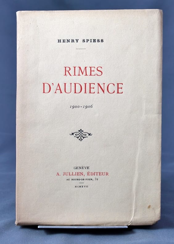 Genève, A. Jullien, 1917. In-8 broché de 212 pages. Couverture sable imprimée en rouge et noir à petits rabats. Traces de plis au premier plat, dos légèrement foncé.