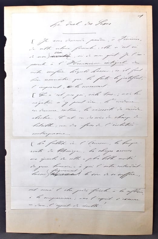 Bel article autographe sur l’égalité des sexes et l’émancipation des femmes, tant au niveau familial que concernant le travail et sa rémunération. Malheureusement toujours d’actualité... Publié le 10 janvier 1897 dans «Le Journal». Femme avant-gardiste, Caroline Rémy fut à la pointe des causes humanistes et égalitaires de son temps. Ecrivain, journaliste - elle fut la première femme à diriger un grand quotidien, Le Cri du Peuple, qu'elle avait remis sur pieds avec Jules Vallès, libertaire et féministe, c'est elle qui est élue pour présider la Ligue des droit de l'homme à sa fondation! Elle sera du côté des dreyfusards lors de l'Affaire, participera aux efforts collectifs pour soutenir Sacco et Vanzetti, et prend la défense de Germaine Berton lors de son procès (elle assassina le secrétaire de l'Action française).Beautiful autograph article on gender equality and the emancipation of women, both at family level and concerning work and its remuneration. Unfortunately still relevant... Posted January 10, 1897 in "Le Journal". Avant-garde woman, Caroline Rémy was in the forefront of the humanist and egalitarian causes of her time. Writer, journalist - she was the first woman to run a major daily, Le Cri du Peuple, which she had set up with Jules Vallès, libertarian and feminist, she was elected to preside over the Ligue des droit de l'homme at her foundation! She will be on the side of the "Dreyfusards" during the Affair, will participate in collective efforts to support Sacco and Vanzetti, and will defend Germaine Berton during her trial (she assassinated the secretary of the Action française).