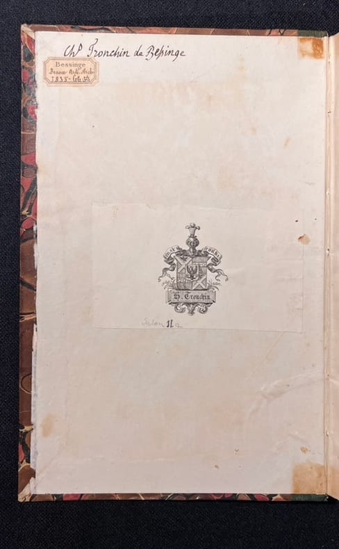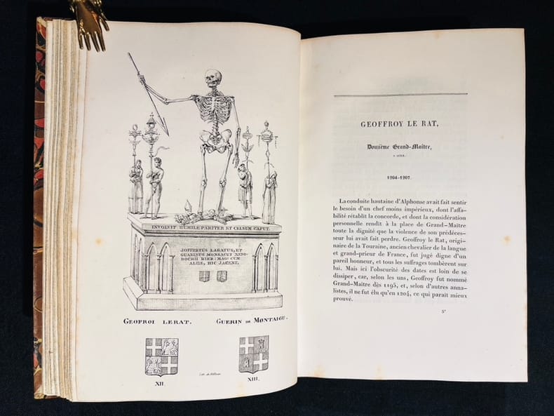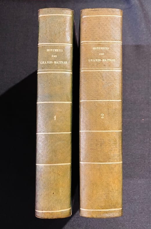 Illustré de 2 frontispices et de 41 planches hors-texte dont 5 dépliantes pour le premier volume et 40 planches hors-texte dont 11 dépliantes pour le second, l'ensemble lithographié. Édition originale. Belle publication avec une abondante iconographie. De la bibliothèque du château de Bessinge (famille Tronchin) avec ex-libris. Dessubré, Biblio. de l'ordre des Templiers, 1103. !!! !!! Du 3 octobre au 24 octobre il n'y aura pas d'expédition de colis: le libraire est en voyage. La librairie reste ouverte et nous répondrons sporadiquement aux emails. Merci pour votre compréhension. ––> From 3 October to 24 October, there will be no parcel deliveries as the bookseller will be travelling. The bookshop will remain open and we will respond to emails sporadically. Thank you for your understanding.