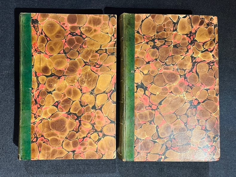 Paris, J.-J. Blaise, 1829. 2 volumes in-8 de [3]ff. (dont le frontispice), XX-317-[2] pour le catalogue + [3]ff. (dont le frontispice)-467 pages, demi-chagrin vert à grain long, dos lisses ornés de filets dorés, dos légèrement passés, rousseurs.